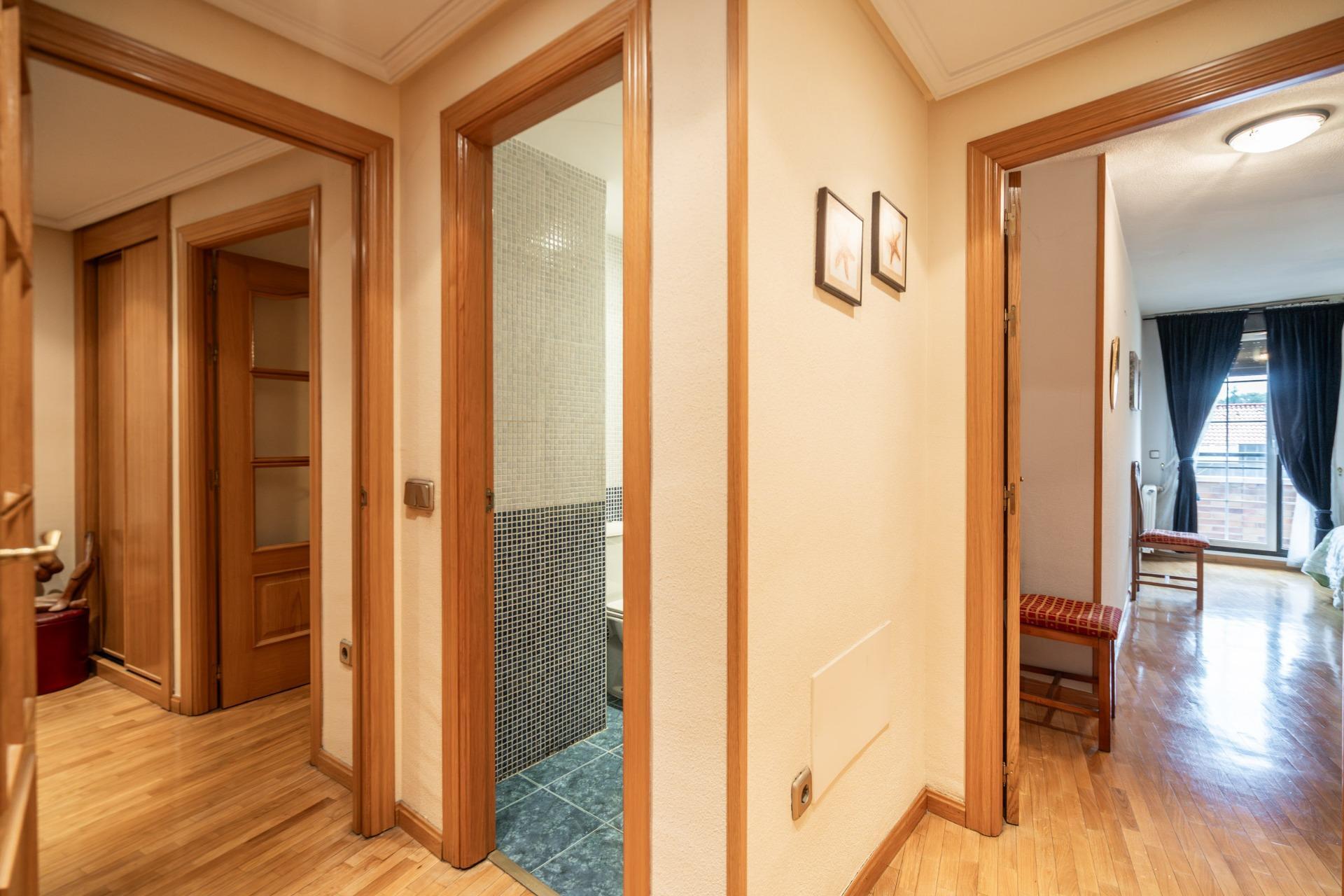 PISO EXTERIOR EN URBANIZACIÓN PRIVADA EN PLENO CENTRO Y CON VISTAS A LA SIERRA Presentamos esta magnífica vivienda exterior de 108 m² situada en la última planta de un edificio de sólida construcción de tan solo tres alturas, dentro de una cuidada urbanización privada en pleno centro de Collado Villalba. Una propiedad que combina amplitud, privacidad y vistas privilegiadas en una de las zonas más demandadas de la Sierra de Madrid. La vivienda se distribuye en dos amplios dormitorios y dos baños completos. Destaca su luminosa terraza de gran longitud, compartida tanto por el salón como por el dormitorio principal, desde donde se disfrutan despejadas vistas a la sierra y al centro del municipio, aportando una agradable sensación de espacio y tranquilidad. Dispone de cocina independiente totalmente equipada, con práctica despensa anexa que aporta funcionalidad y capacidad de almacenaje. La propiedad se entrega amueblada y cuenta con armarios empotrados, optimizando cada metro cuadrado. El edificio dispone de ascensor, puerta blindada y videoportero, garantizando comodidad y seguridad. La urbanización ofrece piscina comunitaria, servicio de vigilancia 24 horas y plaza de garaje incluida, un valor añadido imprescindible en el centro urbano. Ubicada en una zona plenamente consolidada, con todos los servicios a escasos minutos a pie: colegios, parques, supermercados, centros de salud y excelente comunicación tanto por transporte público como por carretera. Vivir en Collado Villalba supone disfrutar del entorno natural de la Sierra de Guadarrama sin renunciar a la comodidad de un núcleo urbano con todos los servicios. Este anuncio no es vinculante y puede contener errores. Se muestra a título informativo y no es contractual.